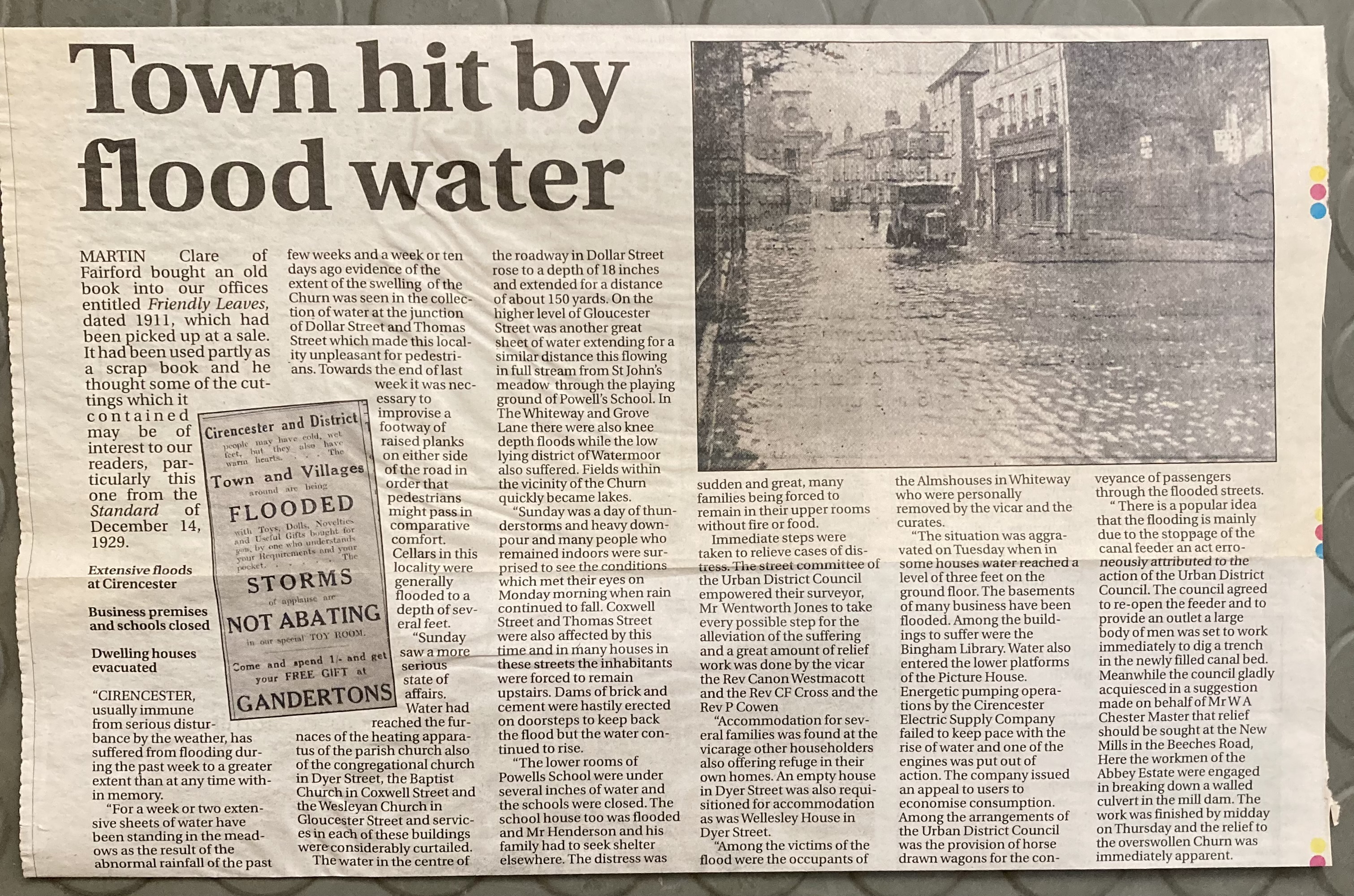 Bomford Cottage on the River Churn for almost two centuries – some interesting observations about flooding by the owner and occupant, William Cooper.